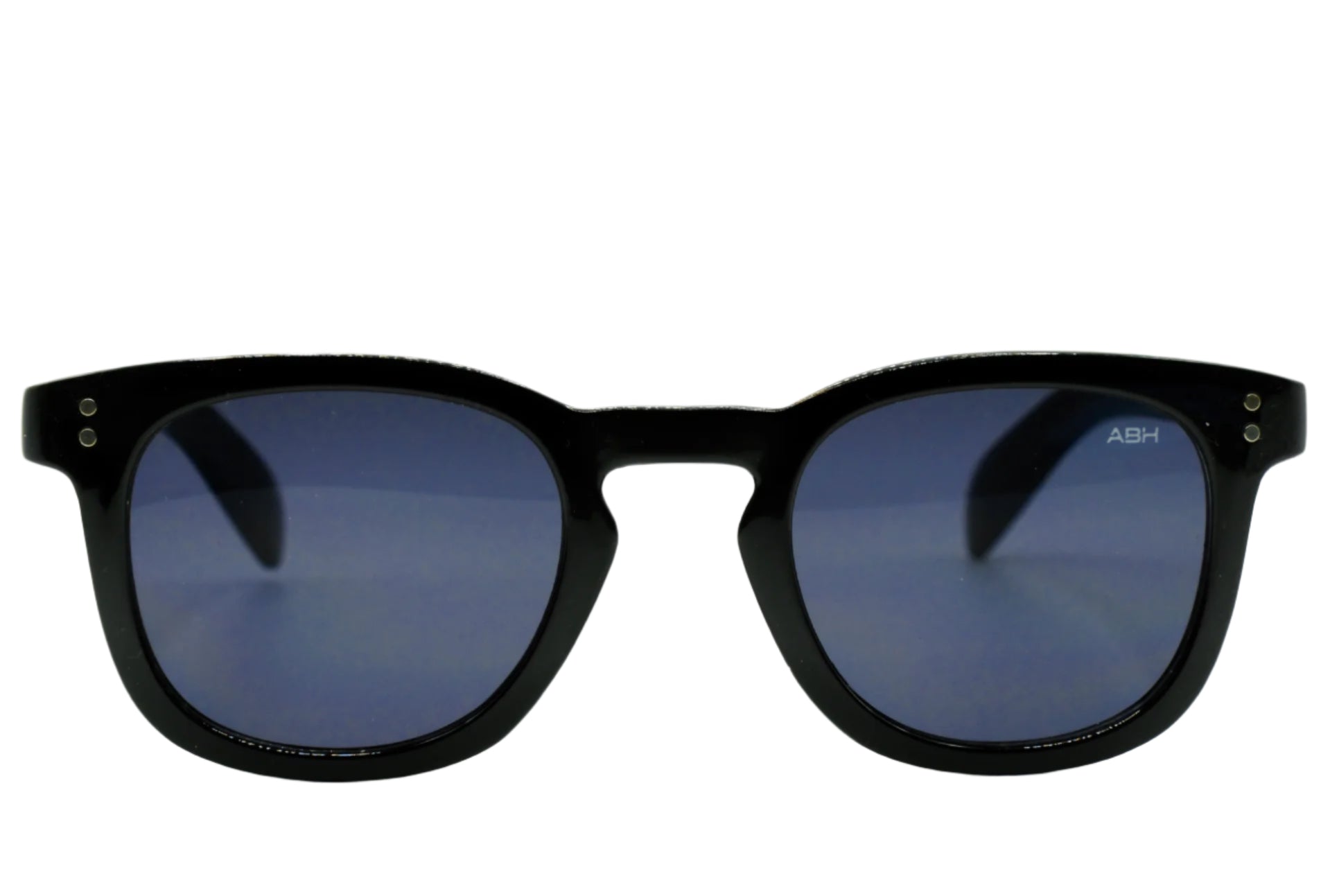 Turn heads with understated edge in the ABH Noir Classic. These bold square-frame sunglasses blend timeless design with cool modern flair, featuring glossy black frames, deep blue lenses, and subtle gold rivet detailing for a refined finish.